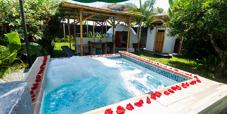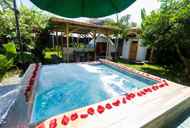 VELAS Y PÉTALOS ALREDEDOR DEL JACUZZI