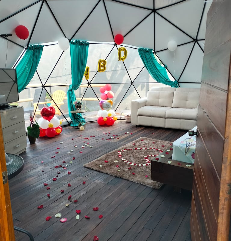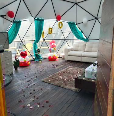 En Glamping Valle Santo Experience nos encanta celebrar tus momentos especiales, ser tu confidente para todo tipo de celebraciones: Cumpleaños, Aniversarios, Luna de miel, Noche romántica y toda ocasión especial que desees celebrar con tu pareja, familiares o amigos. Recuerda que tenemos una unidad con capacidad para 8 personas.